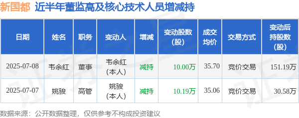 新国都: 7月8日高管韦余红减持股份合计10万股